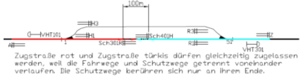 (4) b) Auf Verlangen des IB dürfen Verschubstraßen in denselben Gleisabschnitt gegeneinander zugelassen werden.